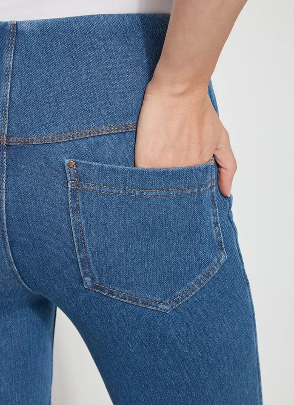 By Customer Request, We Introduce The Baby Bootcut Denim In A Shorter, 27″ Inseam. With A Full Length Fit Under 5’7″ And Perfectly Cropped At 5’8″+, The Baby Bootcut (27″ Inseam) Offers A Concealed Patented Waistband, Back Patch Pockets With Metal Grommets And Anatomical Seaming That Lifts And Contours. The Baby Bootcut Denim (27″ Inseam) Jean Skims The Hips And Thighs Before Falling Into A Slightly Flared Bootcut Hem.