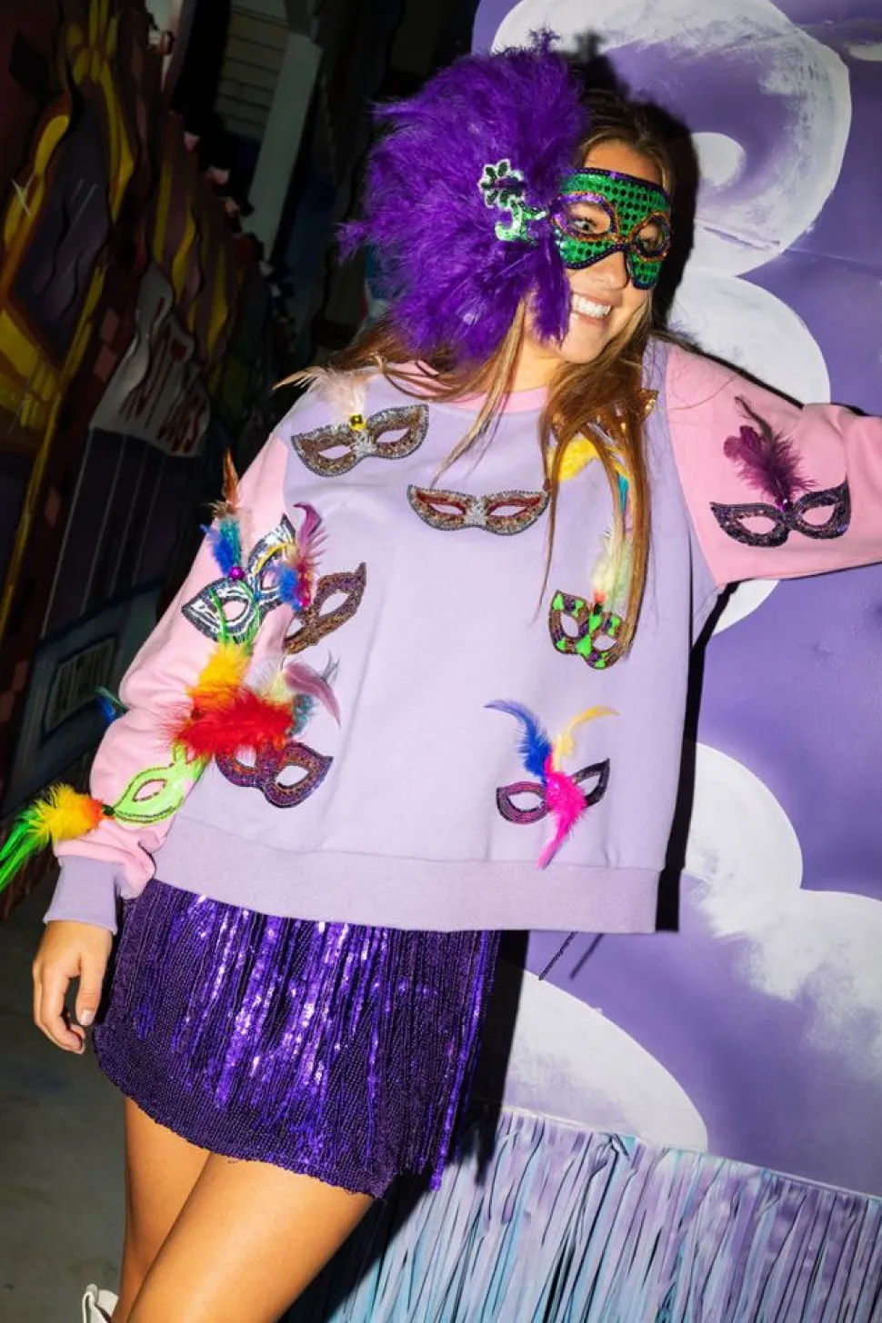 Queen of Sparkles Sweatshirts- Mardi Gras Feather Mask Sweatshirt