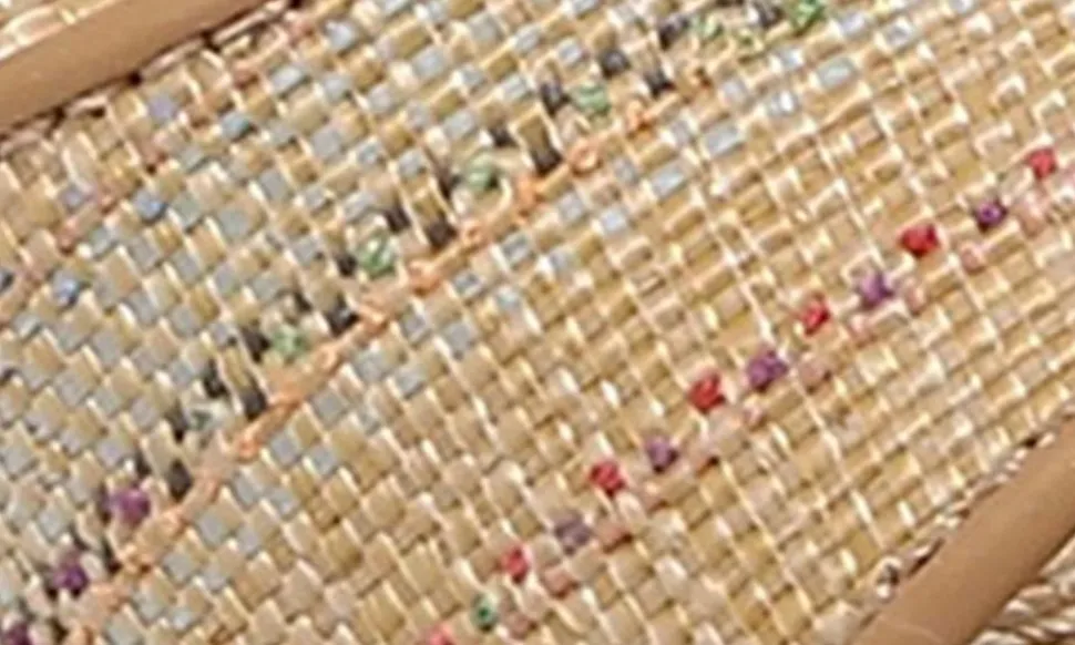 Textured Straps And Wraparound Ankle Ties Create Modern Dimension On An Espadrille-Inspired Sandal Lofted By A Raffia-Covered Platform And Soaring Wedge Heel.