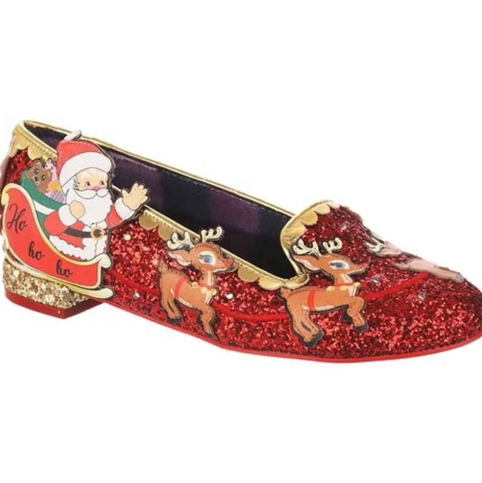 Make Friends With The Reindeer And Take A Ride On Santa’S Sleigh! These Red Glitter Flat Pumps Are The Perfect Christmas Shoes, Complete With Father Christmas Carrying A Sack Of Presents, Flying Behind The Cute Applique Reindeer. The Gold Glitter-Covered Heel And Metallic Gold Scalloped Edging Glisten When The Six Embedded Lights On The Toe And Outside Of The Shoe Are Activated, Making The Reindeer Look Like They Are Flying Through The Sky! Get Yours Before They Fly Away!