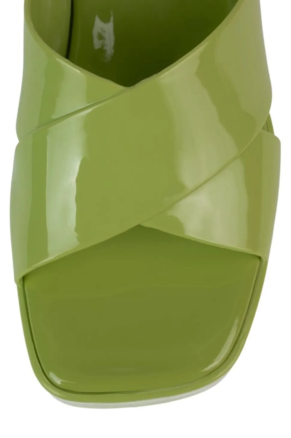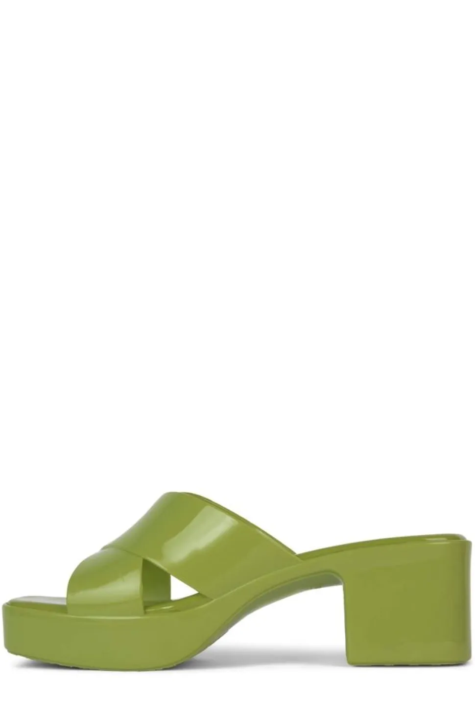 Square Toe Platform Jelly Sandal With Cross Band Straps.
